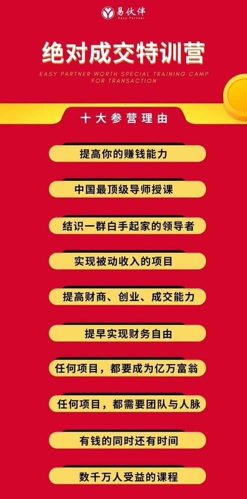 在年前开启今年最后一轮易伙伴的《绝对成交特训营》