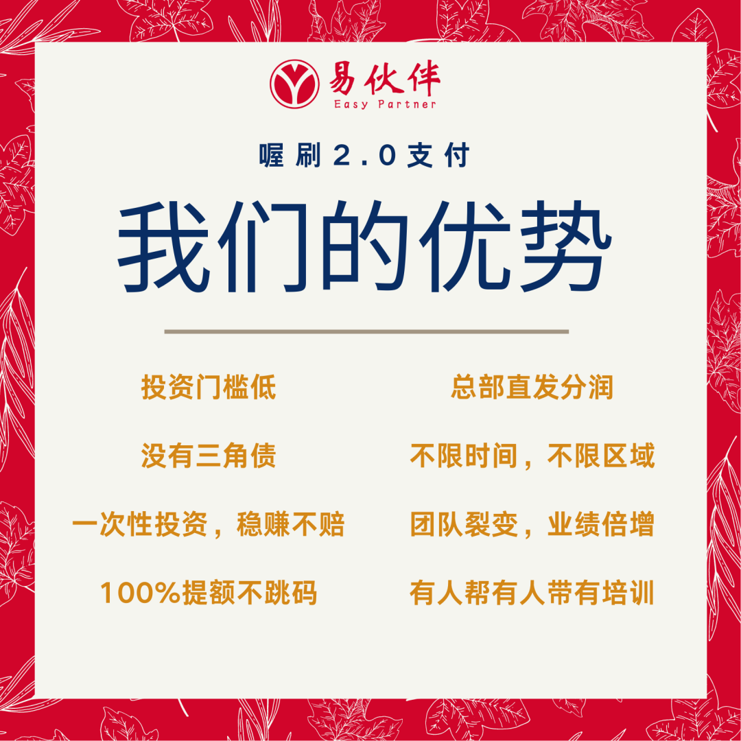 预付卡发行受理,互联网支付,移动电话卡支付,银行卡收单(范围是全国),旗下喔刷品牌产品是全国唯一100%标准商户带积分,智能匹配商户,落地真实商户!获得中国银联软、硬件双重认证,年支付结算金额超万亿。