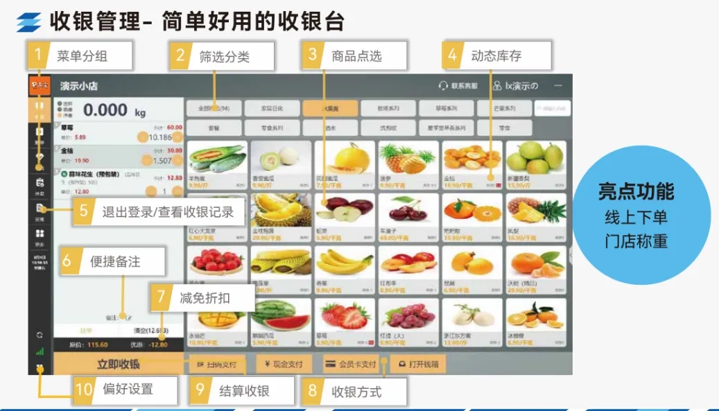 在生鲜零售的战场,商家常被两大难题困住手脚:一是效率——传统收银依赖人工操作,高峰期排队、错单漏单频现,库存与营收数据更是雾里看花;二是损耗——生鲜产品易腐损,从采购到销售全链路损耗率居高不下,而模糊的分级标准与滞后的预警机制,让本已微薄的利润进一步被蚕食。
