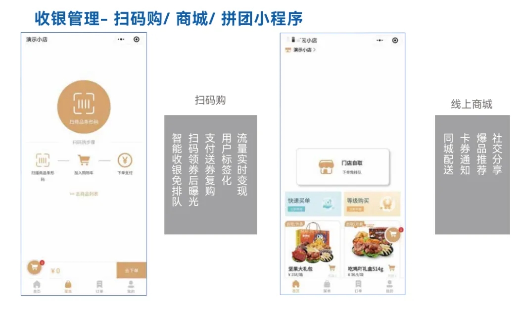 聚收宝线上商城支持“第三方配送 +社区拼团+多级分销”三位一体模式,门店可一键接入外卖平台,同步启动社群裂变。其千店千面的小程序会员中心,通过打标签、送复购券等定制化策略,将线下到店顾客转化为线上私域流量 。