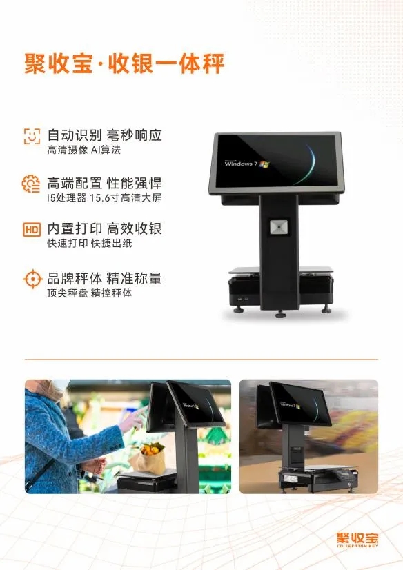 生鲜一体机是聚收宝的“黑科技”代表:AI算法+高清摄像,实现毫秒级精准称重,i5处理器+15.6寸大屏保障性能,集收银、称重、打印于一体,大幅提高结账效率。同时,系统内置门店报表+员工管理模块,商家可实时查看各时段销售数据、库存周转率和员工绩效,真正实现数据驱动决策。