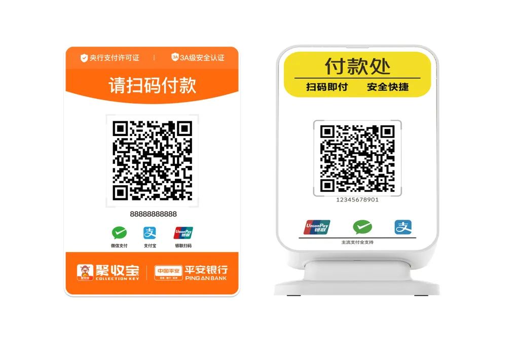 聚收宝收款码牌采用ABS高分子结构材料,具有坚固、抗冲击性、耐热性、耐低温性等优点;同时,产品切面采用钻石抛光技术,晶莹剔透,边沿采用捣圆工艺处理,圆润美观不伤手,彰显高科技品质。